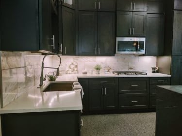 Bold Onyx Black shaker cabinets bring vibrant color and elegance to kitchens.