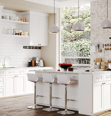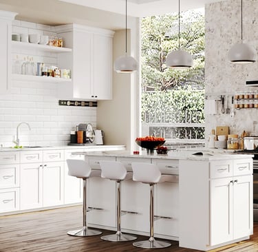 Classic white shaker cabinets that enhance and expand any kitchen area.