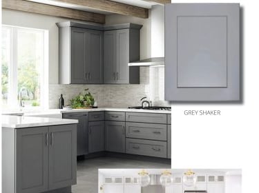 Distinctive Gray shaker cabinets adding bold color and style to kitchens.