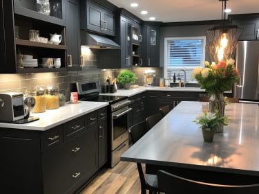 Stylish slate shaker cabinets that provide a modern and sophisticated appearance.