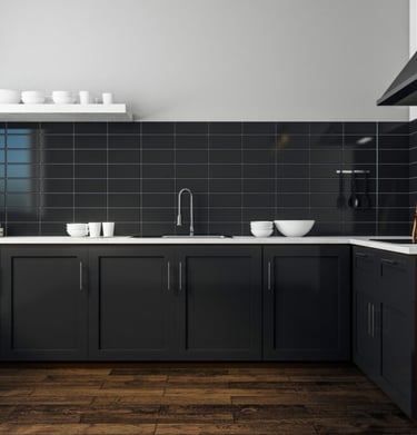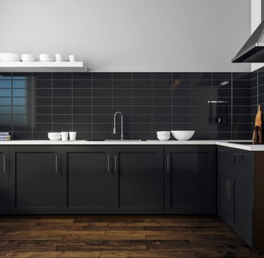 Bold Onyx Black shaker cabinets bring vibrant color and elegance to kitchens.